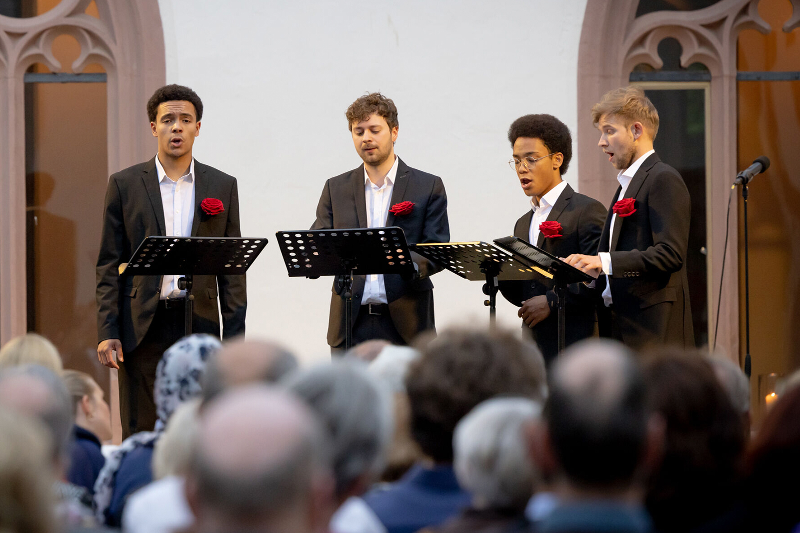 Schon einmal waren die German Gents beim Mozartfest. 2022 debütierten sie im Himmelspfortener Kreuzgarten und sangen sich in die Herzen der Würzburger. In untypischer Jahreszeit kehrt das Ensemble nun zurück und stimmt auf die besinnliche Zeit des Jahres ein. Erstmals heißt es nicht im Juni, sondern im November: Willkommen zum Mozartfest Würzburg! Und dann öffnet das Mozartfest gleichsam sein Zuhause. Vis à vis der Residenz hat das Organisationsteam 2024 im aufwändig restaurierten Mozartareal – der ehemaligen Mozartschule – eine neue Heimat gefunden.